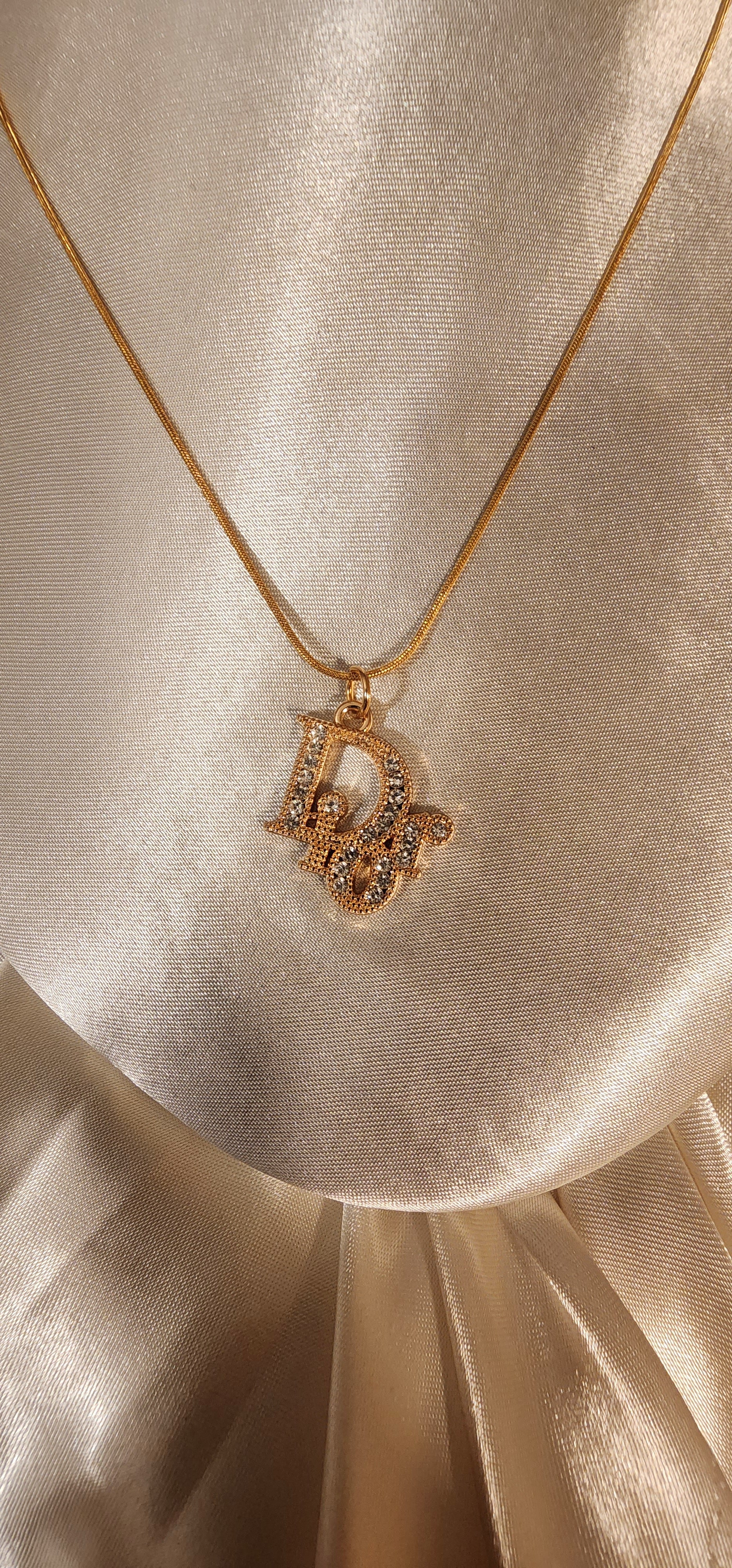 Part of our DR Era collection. This crystal embedded letter charm necklace is crafted using an authentic vintage designer component, originally sourced from a designer accessory. The charm component has been thoughtfully repurposed, restored and reworked into a timeless pendant. Our necklaces are made with solid Sterling Silver 925 and thick gold vermeil—fine-jewelry grade, made with real precious metals and designed to last a lifetime.